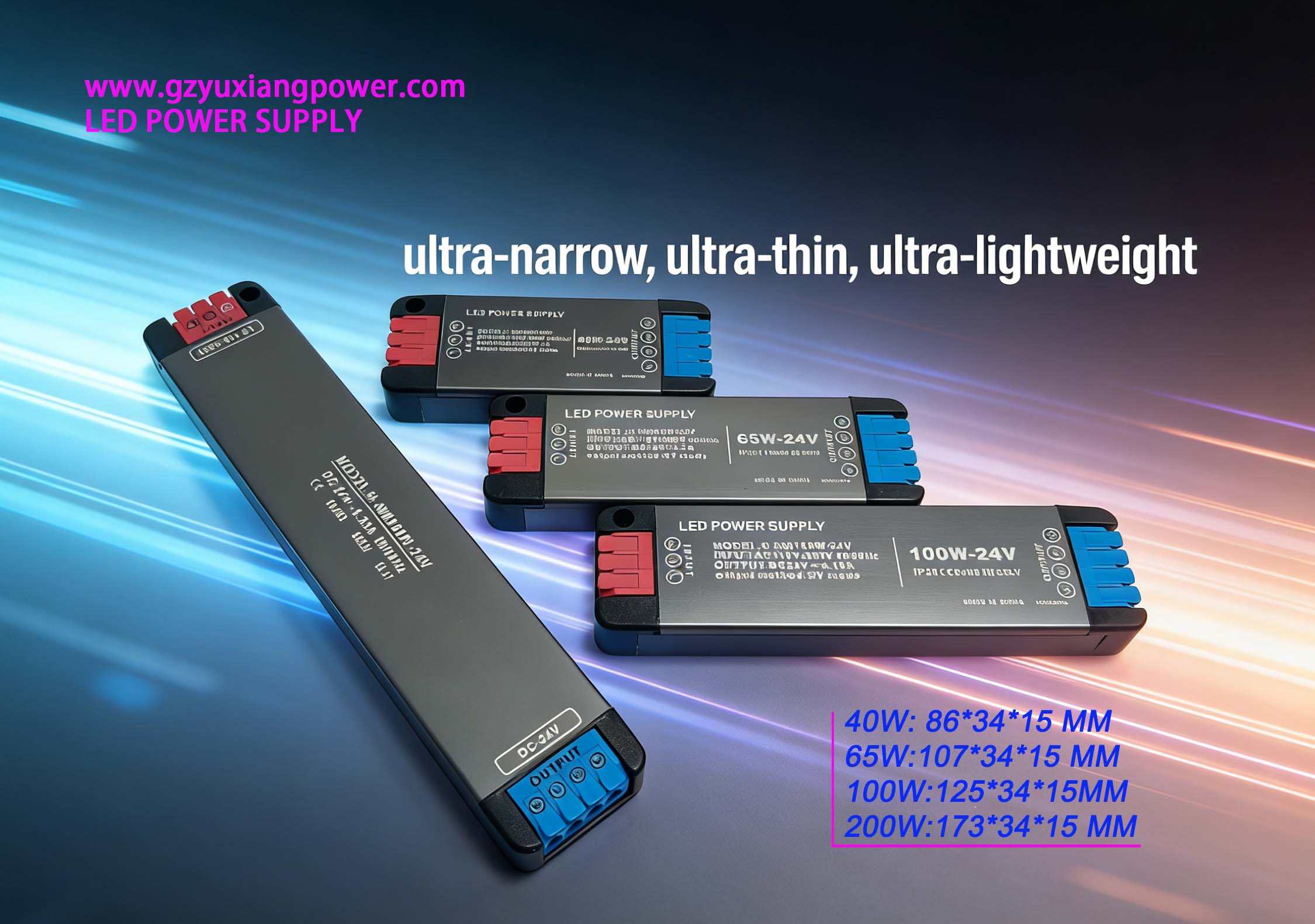 1, সমগ্র সিরিজটিতে একটি অতি-পাতলা, দীর্ঘায়িত নকশা রয়েছে, শুধুমাত্র 15 মিমি পুরু এবং 34 মিমি চওড়া। সবচেয়ে ছোট 40W মডেলটি মাত্র 86 মিমি লম্বা, এবং সবচেয়ে বড় 200W মডেলটি মাত্র 173 মিমি লম্বা, সত্যিকার অর্থে "আপনার হাতের তালুতে ফিট করার জন্য যথেষ্ট ছোট!" এটি সহজে সিলিং লাইট ট্রফ, ক্যাবিনেট, ওয়াইন ক্যাবিনেট, লাইট বক্স এবং স্ট্রেচ সিলিং এর মতো সংকীর্ণ জায়গায় এম্বেড করা যেতে পারে, সম্পূর্ণরূপে আড়াল ছাড়াই, সাজসজ্জার সামগ্রিক নান্দনিকতা রক্ষা করে। ব্যবহারিক এবং স্থান-সংরক্ষণ, এটি পুরোপুরি আবাসিক এবং বাণিজ্যিক উভয় সাজসজ্জার গোপন বিদ্যুৎ সরবরাহের চাহিদা পূরণ করে।